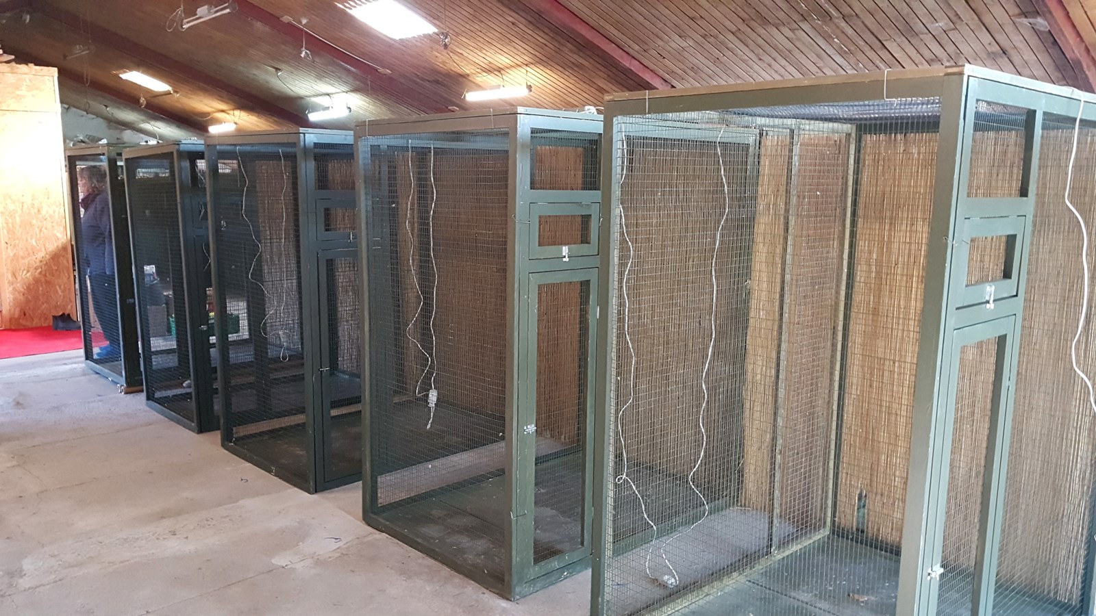 Også de gamle voliere, som har været brugt i salgsafdelingen, samt burene, vi kalder dværgpapegøjebure, blev alle sat til fri afbenyttelse. Begge vil fremover blive erstatte af voliere.