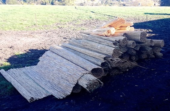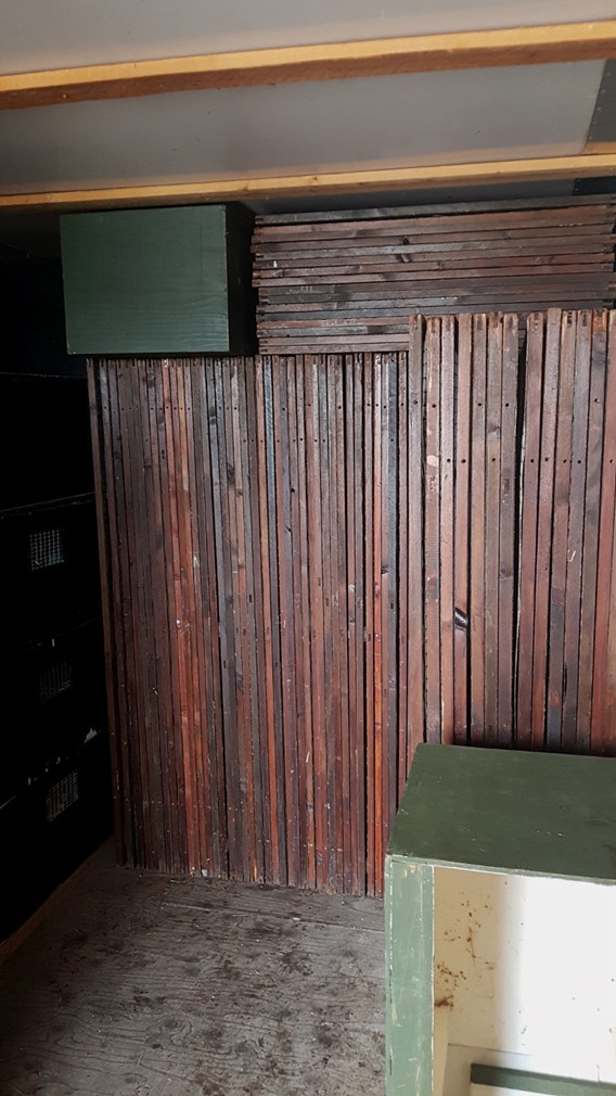 Vi har i år valgt at udskiftet de gamle sivmåtter med grøn velourdug, mange måtter var efterhånden ved at gå i opløsning, samtidig optog de rigtigt meget plads i containeren. Det er plads vi har brug for, nu vi har overtaget Haslevs voliere.