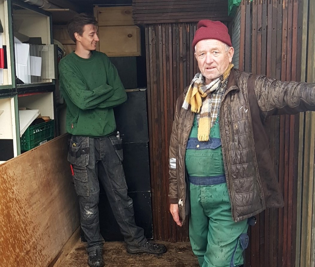 For nogle sluttede udstillingen ikke søndag aften. Onsdag formiddag mødtes Benjamin, Niels og Claus for at flytte de volierer, som vi har fået fra Haslev Fugleforening. De stod i Nielses lade, og skulle flyttes til containeren, hvor der nu var blevet plads.