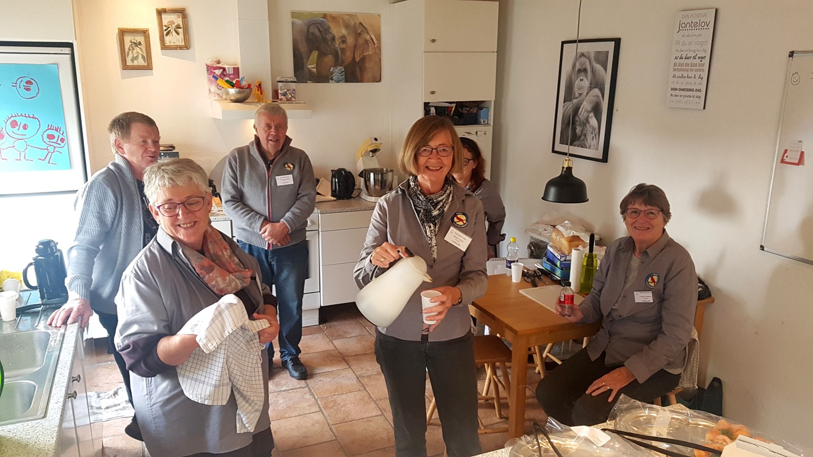 Lørdag var Karen, Sanne, Hanne, Elly, Henning og Torben, står klar, til at tage imod de første kaffehungrende kunder.
