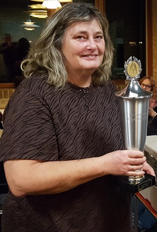 Vibeke med vandrepokal for gruppen Græsparakitter